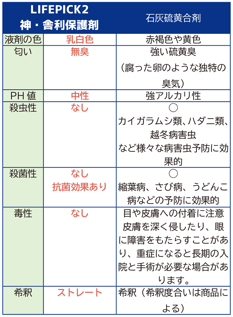 ~「ライフピック」(石灰硫黄合材)比較~