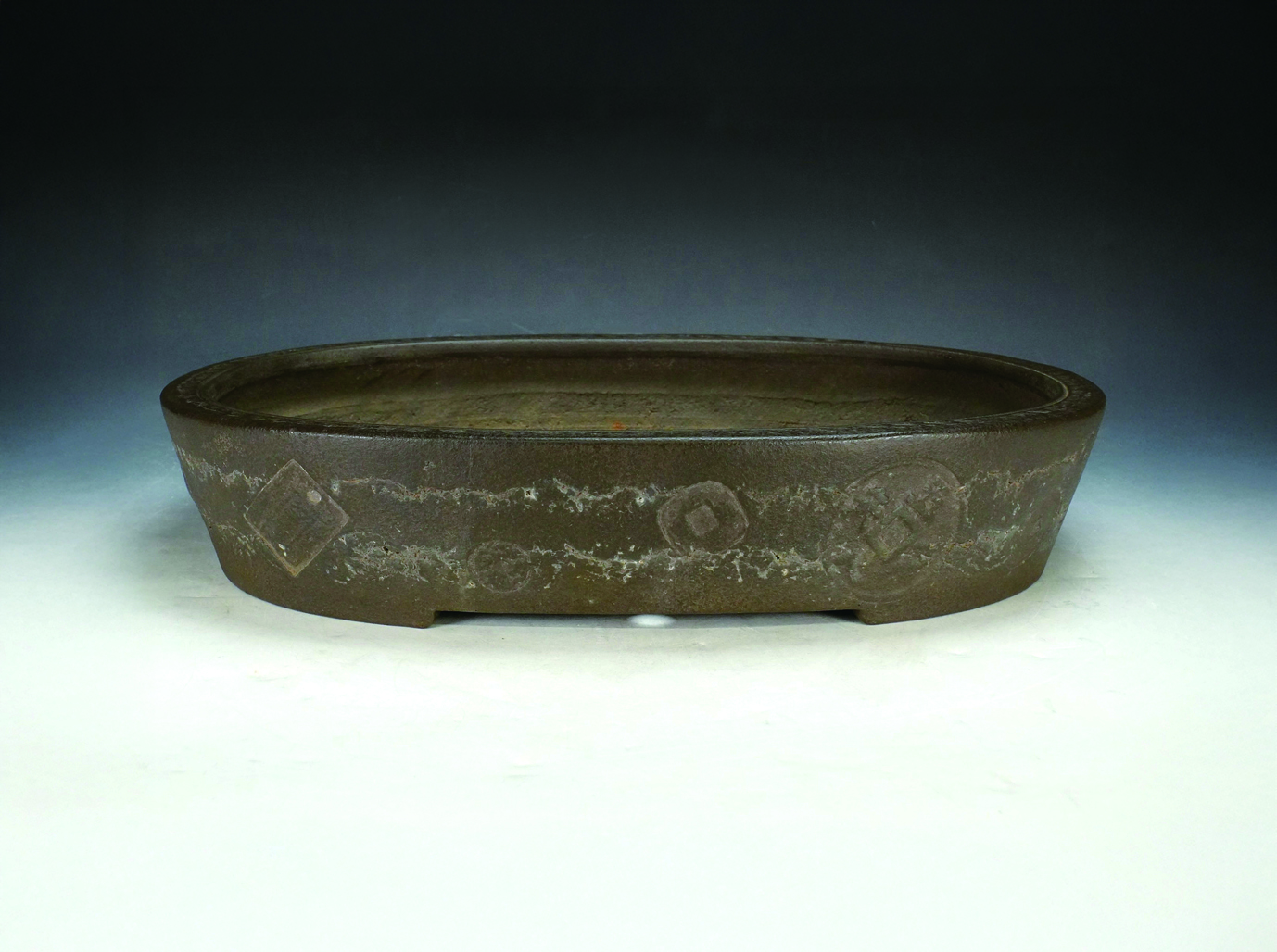 十王堂松泉紫泥切立古銭紋虫喰切足楕円